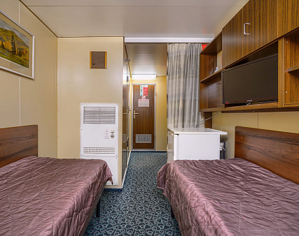 Возможна продажа каюты в трех- и двухместном размещении по стоимости трехместной двухъярусной и двухместной одноярусной каюты.