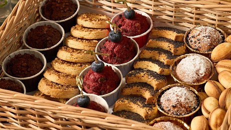 - Завтрак, обед – заказная система, фиксированная рассадка с элементами шведского стола (фрукты, десерты, соусы) и включенными напитками (вода, чай, кофе, домашний морс, сок) без ограничения;