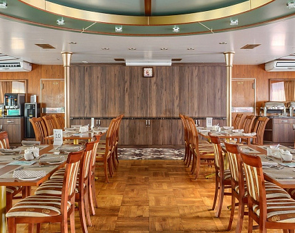- Завтрак — шведский стол или заказная система с элементами шведского стола, фиксированная рассадка. Включённые напитки (без ограничения): вода, сок, чай, кофе. В рейсах до 4-х дней при ранней высадке в день прибытия завтрак континентальный;