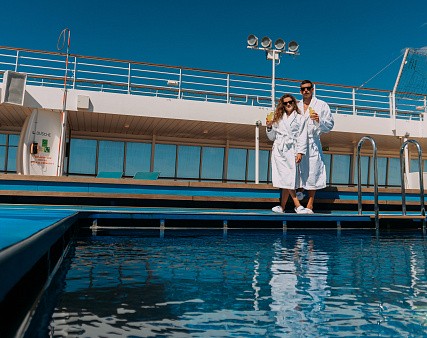 - На все круизы теплохода «Astoria Grande» применяется скидка по программам «Водоход.Бонус» и «Водоход.Про» (с ограничением максимальной скидки до 6%).