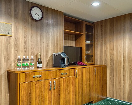 - Каюты класса «Люкс»: бутилированная вода в каюте (ежедневное пополнение) — 1 бутылка (0,5 л.) на человека в день;
