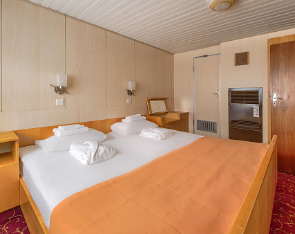 Возможна продажа каюты в двухместном одноярусном размещении (по стоимости 2-местной одноярусной каюты) и в трёхместном двухъярусном размещении (по стоимости 3-местной двухъярусной каюты).