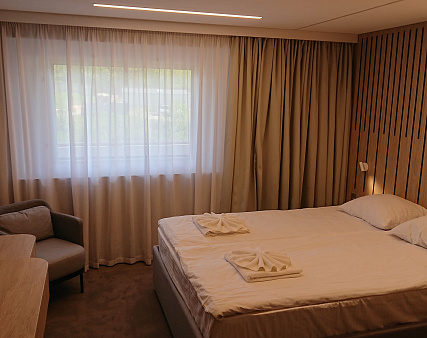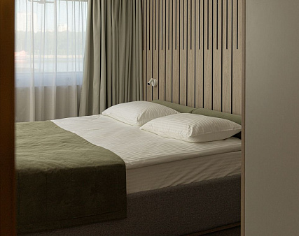 В каютах № 359, 360 — двуспальная кровать, диван (не раскладывается, можно разместить одного человека), площадь каюты 24,8 м2