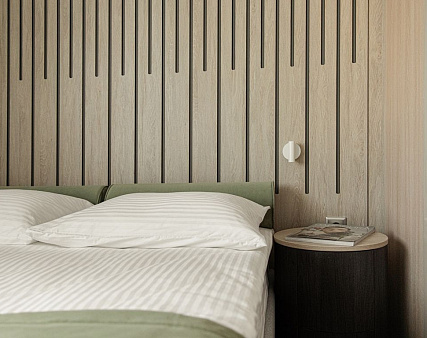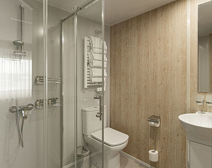 В каютах № 301, 302, 303, 304 — двуспальная кровать, диван (не раскладывается, можно разместить одного человека), площадь каюты 25,4 м2