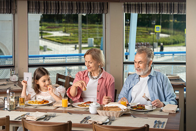 - Трехразовое питание. В день начала и день окончания круиза питание предоставляется в зависимости от времени посадки и высадки; в случае, если время проведения экскурсии совпадает со временем приема пищи, гостю предоставляется питание в ресторане/кафе города или выдается «ланч-бокс»
