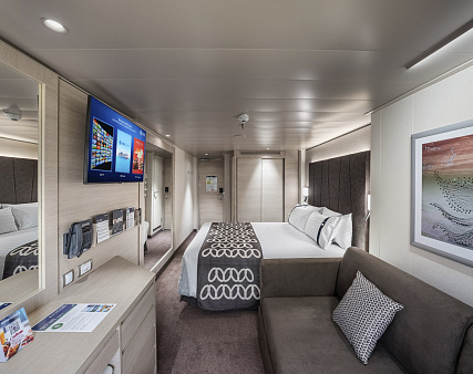В каюте: две кровати, поставленные вместе или раздельно, интерактивное TV, телефон, фен, мини-бар, сейф, кондиционер. Окно (не открывается). Ванная комната с душем и туалетом. Виртуальный персональный круизный ассистент ZOE. Беспроводной Интернет (оплачивается дополнительно).