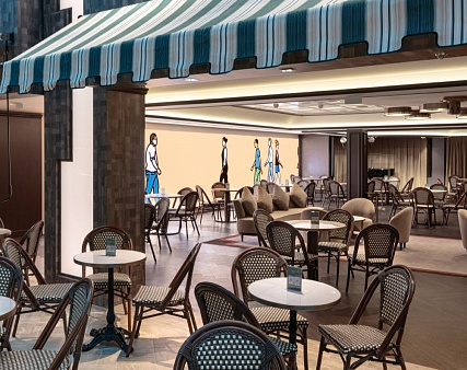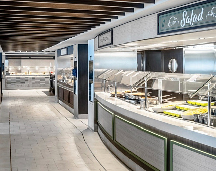 - Ужин:в качестве альтернативы основному ресторану вы можете поужинать за шведским столом или в пиццерии без фиксированных смен питания и столика. Ужин с обслуживанием по меню проходит в основных ресторанах.В зависимости от категории каюты гостям доступны разные системы посещения основных ресторанов за ужином.