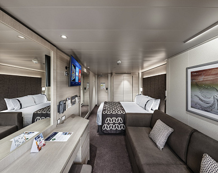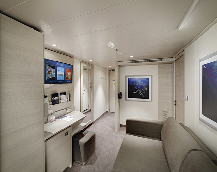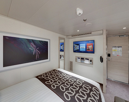 В каюте: две кровати, поставленные вместе или раздельно, дополнительные спальные места: двухъярусная кровать или диван, трансформирующийся в двухъярусную кровать, и/или раскладной диван, интерактивное TV, телефон, фен, мини-бар, сейф, кондиционер. Окно (не открывается). Ванная комната с душем и туалетом. Виртуальный персональный круизный ассистент ZOE. Беспроводной Интернет (оплачивается дополнительно).
