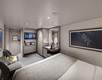 В каюте: две кровати, поставленные вместе или раздельно, интерактивное TV, телефон, фен, мини-бар, сейф, кондиционер. Окно (не открывается, ограниченный вид из окна). Ванная комната с душем и туалетом. Виртуальный персональный круизный ассистент ZOE. Беспроводной Интернет (оплачивается дополнительно).