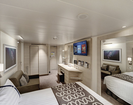 В каюте: две кровати, поставленные вместе или раздельно, дополнительные спальные места: раскладной диван, двухъярусная кровать или откидные кровати над основными спальными местами, интерактивное TV, телефон, фен, мини-бар, сейф, кондиционер. Балкон. Ванная комната с душем и туалетом. Виртуальный персональный круизный ассистент ZOE. Беспроводной Интернет (оплачивается дополнительно).