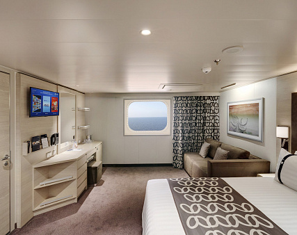 В каюте: две кровати, поставленные вместе или раздельно, дополнительные спальные места: двухъярусная кровать или диван, трансформирующийся в двухъярусную кровать, и/или раскладной диван, интерактивное TV, телефон, фен, мини-бар, сейф, кондиционер. Окно (не открывается). Ванная комната с душем и туалетом. Виртуальный персональный круизный ассистент ZOE. Беспроводной Интернет (оплачивается дополнительно). Гарантированная каюта с окном. Номер каюты будет известен только перед началом круиза.