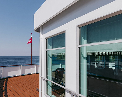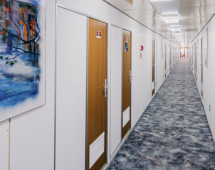 Расширена площадь санблока, отдельный душ, санузел, кондиционер. Площадь каюты — 26 кв.м.
