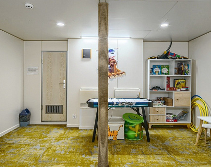 Расширена площадь санблока, отдельный душ, санузел, кондиционер.