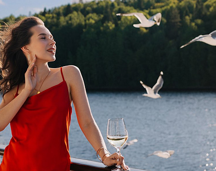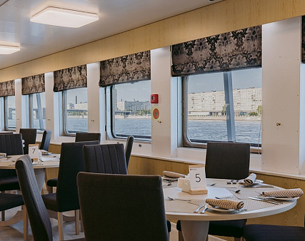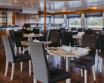 - Ужин – заказная система питания (выбор блюд со 2-го дня круиза). Включенные напитки (без ограничения): вода, чай, кофе. Кисломолочный напиток (1 стакан, 200 мл.) по запросу гостя. На выбор: вино красное / белое / игристое (1 бокал, 125 мл.) / водка (1 рюмка, 50 мл.) / пиво (1 бокал, 300 мл.) / домашний морс (1 бокал, 200 мл.). Фиксированная рассадка;