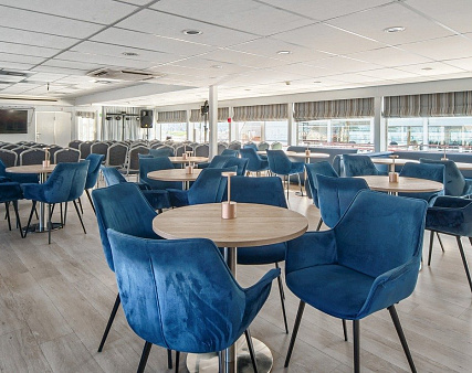 - Обед – заказная система питания (выбор блюд со 2-го дня круиза). Включенные напитки (без ограничения): чай, кофе. Фиксированная рассадка;