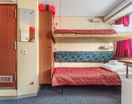 Во второй комнате: одно (номера кают: 7, 8) или два — одно над другим (номера кают: 124, 125) спальных места, шкаф для одежды, обзорное окно.