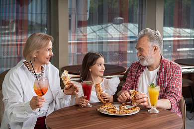 • Ужин — заказная система питания (выбор блюд со 2-го дня круиза). Включённые напитки (без ограничения): вода, чай, кофе, кисломолочный напиток (1 стакан 200 мл на ужин по запросу гостя). На выбор: вино красное / белое / игристое (1 бокал, 125 мл) / водка (1 рюмка, 50 мл) / пиво (1 бокал, 300 мл), домашний морс (1 бокал, 200 мл);