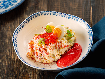 - Ужин — заказная система питания (выбор блюд со 2-го дня круиза). Включённые напитки (без ограничения): вода, чай, кофе, кисломолочный напиток (1 стакан 200 мл на ужин по запросу гостя). На выбор: вино красное / белое / игристое (1 бокал, 125 мл) / водка (1 рюмка, 50 мл) / пиво (1 бокал, 300 мл), домашний морс (1 бокал, 200 мл);