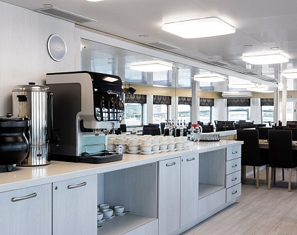 - Ужин – заказная система питания (выбор блюд со 2-го дня круиза). Включенные напитки (без ограничения): вода, чай, кофе. Кисломолочный напиток (1 стакан, 200 мл.) по запросу гостя. На выбор: вино красное / белое / игристое (1 бокал, 125 мл.) / водка (1 рюмка, 50 мл.) / пиво (1 бокал, 300 мл.) / домашний морс (1 бокал, 200 мл.). Фиксированная рассадка;