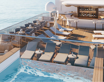 Балкон: два кресла, кофейный столикВ каюте: двуспальная кровать, прикроватные тумбы, журнальный столик, письменный стол, гардероб диван, кресло, панорамные окна, спутниковое ТВ, шкаф для одежды, холодильник, кондиционер, розетки 220V, телефон, радио, фен, капсульная кофемашина, электрочайник, cейф, душ, санузел. Панорамный балкон: два кресла, кофейный столик.