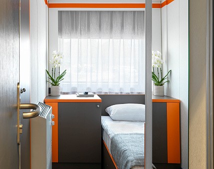 Однокомнатная каюта с удобствами, рассчитанная на размещение одного человека