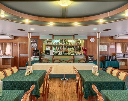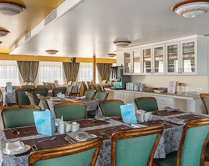 - Завтрак — шведский стол или заказная система с элементами шведского стола, фиксированная рассадка. Включённые напитки (без ограничения): вода, сок, чай, кофе. В рейсах до 4-х дней при ранней высадке в день прибытия завтрак континентальный;