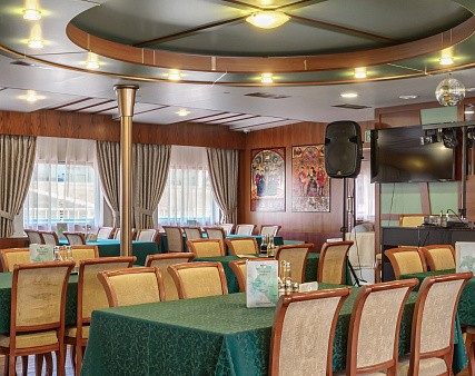 - Трехразовое питание . В день начала и день окончания круиза питание предоставляется в зависимости от времени посадки и высадки; в случае, если время проведения экскурсии совпадает со временем приема пищи, гостю предоставляется питание в ресторане/кафе города или выдается «ланч-бокс»