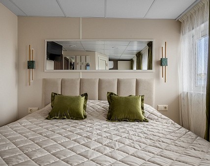 Двухместная каюта большой площади со всеми удобствами, расположенная на шлюпочной палубе. Площадь каюты ≈ 16,5 м².