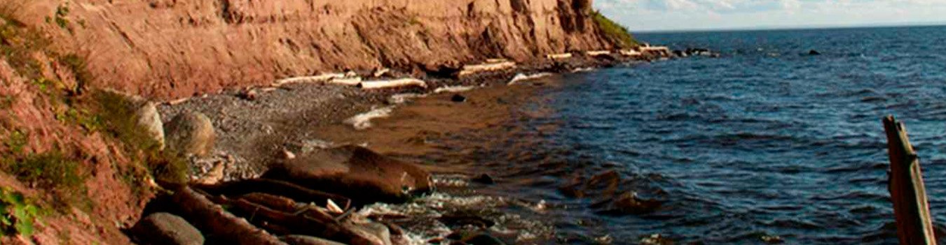 Андомский мыс — одно из красивейших мест на Онежском озере. Андомский геологический разрез, или Андома-гора, как называют его местные, представляет из себя живописный крутой откос, возвыщающийся над водами Онеги. Сама Андома-гора сложена из разноцветных, красных, зеленых, фиолетовых песчаников и песков. Цементом в песчаниках служат окислы кремния и железа, и реже карбонат кальция.В породах встречаются останки панцирных и кистеперых рыб, окаменевшие стволы древних растений девонского периода. Возраст отложений составляет 360—420 миллионов лет.