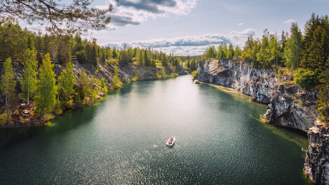 От причала в поселке Хийденсельга вы отправитесь на комфортабельных автобусах в поселок Рускеала, где с XVIII в. действуют наиболее крупные и знаменитые мраморные ломки Карелии. Поселок Рускеала расположен в