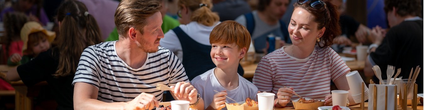 Под навесом большого уличного шатра в русском народном стиле вы сможете под сопровождение концерта народной музыки насладиться обедом на природе, состоящем из простых традиционных блюд и погрузиться в очарование русской деревни