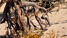 Знаменитые ходульные деревья, из-под которых вода и ветер постоянно вымывают и выдувают песчаную почву, растут на песчаном склоне в северной части бухты. Могучие сосны и лиственницы с закрученными ветром ветвями поднялись над землей на корнях-ходулях выше человеческого роста.