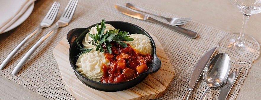 При разработке меню для ресторанов на борту наши шеф-повара вдохновлялись кулинарными традициями побережья Чёрного моря, Волги, Дона, озёрного края Северо-Запада России. Мы используем свежие локальные продукты, характерные для этих регионов, и предлагаем нашим гостям попробовать блюда, которые отражают гастрономические особенности народов нашей страны.