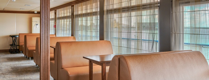 Вас ждут комфортабельные каюты, оснащённые санузлом с душевой, кондиционером, а также холодильником, телевизором и феном в каютах класса «Люкс» и «Евролюкс». Помимо обширного каютного фонда, теплоход «Семен Буденный» предлагает большое количество уютных мест для отдыха. В атмосферных барах и гостеприимных ресторанах на теплоходе вас ждёт тёплый приём, расслабляющая обстановка и потрясающие панорамные виды.