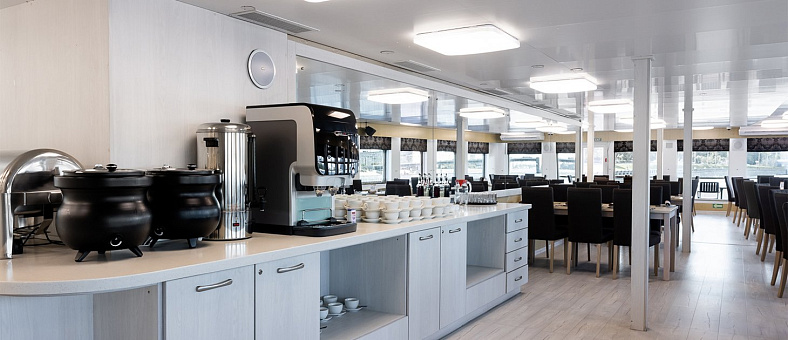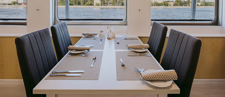 При разработке меню для ресторанов на борту наши шеф-повара вдохновлялись кулинарными традициями побережья Чёрного моря, Волги, Дона, озёрного края Северо-Запада России. Мы используем свежие локальные продукты, характерные для этих регионов, и предлагаем нашим гостям попробовать блюда, которые отражают гастрономические особенности народов нашей страны. Благодаря концепции «Родные берега», вы получите более полное представление о том месте, в котором находитесь, откроете новую палитру вкусовых ощущений и обретёте дружную компанию единомышленников.