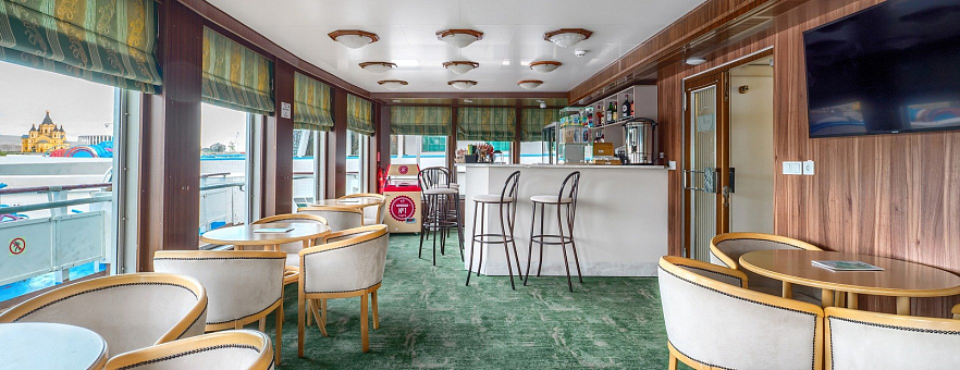 Вас ждут просторные и комфортабельные каюты, оснащённые санузлом с душевой, кондиционером, холодильником, телевизором и феном. Помимо обширного каютного фонда, теплоход «Николай Чернышевский» предлагает большое количество уютных мест для отдыха. В атмосферных барах и гостеприимных ресторанах на теплоходе вас ждёт тёплый приём, расслабляющая обстановка и потрясающие панорамные виды.