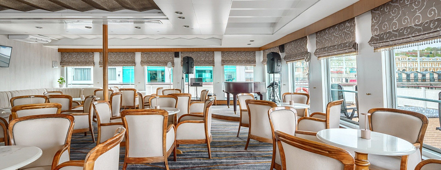 Мы пригласили лучших исполнителей, профессиональных музыкантов и артистов, чтобы превратить ваше время на борту в незабываемый утончённый праздник. Насладиться пейзажами на солнечной палубе, посидеть в ресторанах, посетить вечерний концерт или послушать живую музыку в баре, вспомнить давно забытые хобби или научиться новым на наших мастер-классах, сходить на увлекательную прогулку по городу — вы всегда сможете выбрать что-то особенное для своего настроения.