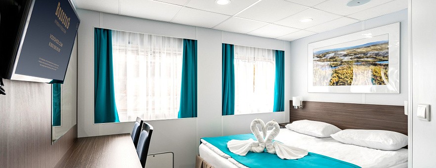 Вас ждут просторные и комфортабельные каюты с современными лаконичными интерьерами. Все каюты оснащены санузлом с душевой, кондиционером, холодильником, телевизором, сейфом и феном. Помимо обновлённого каютного фонда, теплоход «Константин Федин» предлагает большое количество уютных мест для отдыха. В атмосферных барах и гостеприимных ресторанах на теплоходе вас ждёт тёплый приём, расслабляющая обстановка и потрясающие панорамные виды.