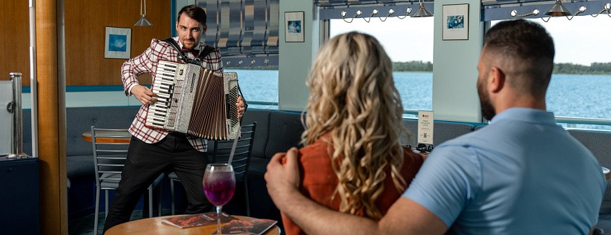 Мы пригласили лучших исполнителей, профессиональных музыкантов и артистов, чтобы превратить ваше время на борту в незабываемый утончённый праздник. Насладиться пейзажами на солнечной палубе, посидеть в ресторанах, посетить вечерний концерт или послушать живую музыку в баре, вспомнить давно забытые хобби или научиться новым на наших мастер-классах, сходить на увлекательную прогулку по городу — вы всегда сможете выбрать что-то особенное для своего настроения.