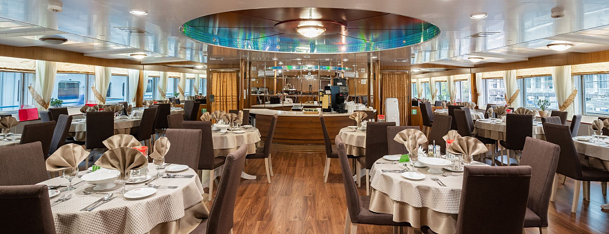 При разработке меню для ресторанов на борту наши шеф-повара вдохновлялись кулинарными традициями побережья Чёрного моря, Волги, Дона, озёрного края Северо-Запада России. Мы используем свежие локальные продукты, характерные для этих регионов, и предлагаем нашим гостям попробовать блюда, которые отражают гастрономические особенности народов нашей страны. Благодаря концепции «Родные берега», вы получите более полное представление о том месте, в котором находитесь, откроете новую палитру вкусовых ощущений и обретёте дружную компанию единомышленников.