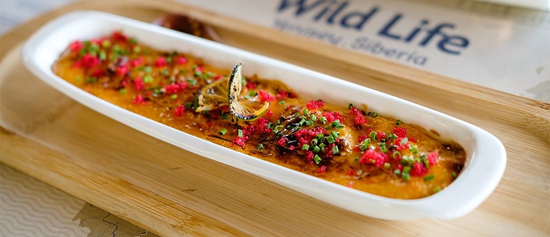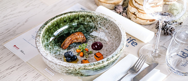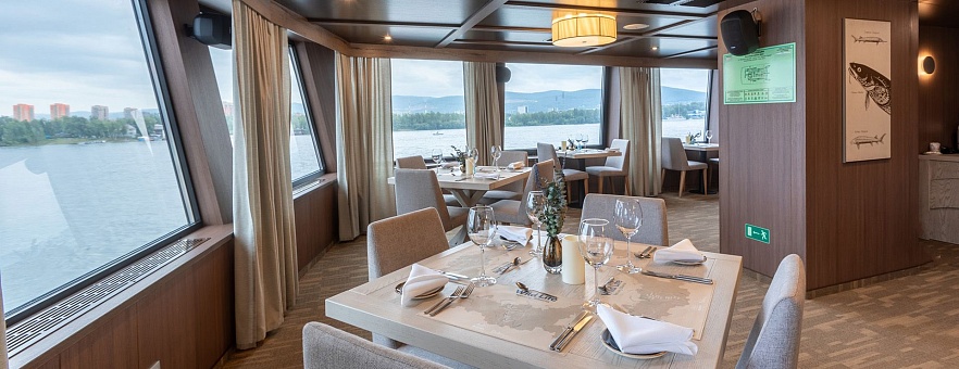 Меню ресторанов на борту сочетает традиции и местные специалитеты с авторскими решениями шеф-поваров. Основной акцент сделан на блюда енисейской кухни с добавлением северной рыбы, таежных дикоросов, ягод и грибов, деликатесов из таёжной дичи. В основе блюд многовековые традиции народов, живущих по берегам Енисея, современное высокотехнологичное переосмысление блюд и продуктов. Для реализации настоящего сибирского опыта мы выбрали надежного гастрономического партнера - Bellini Gastronomic Ecosystem - холдинг с безупречной репутацией и с 15 летним опытом работы в Красноярском крае.
