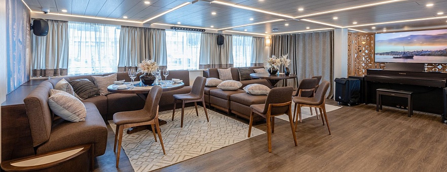 Аутентичный и выдержанный досуг на борту гармонично впишется в ритм круиза и дополнит ваше путешествие яркими впечатлениями. Вас ждут небольшие камерные концерты живой музыки, интересные лекции, оздоровительные процедуры и SPA - все это на фоне удивительной первозданной природы.