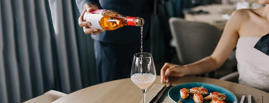 - Ужин – заказная система питания (выбор блюд со 2-го дня круиза), фиксированная рассадка. Включённые напитки (без ограничения): вода, чай, кофе. На выбор: вино красное / белое / игристое (1 бокал, 125 мл) / водка (1 рюмка, 50 мл) / пиво (1 бокал, 300 мл) / домашний морс (1 бокал, 200 мл). По запросу гостя: кисломолочный напиток (1 стакан, 200 мл).