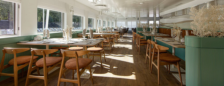При разработке меню для ресторанов на борту наши шеф-повара вдохновлялись кулинарными традициями побережья Чёрного моря, Волги, Дона, озёрного края Северо-Запада России. Мы используем свежие локальные продукты, характерные для этих регионов, и предлагаем нашим гостям попробовать блюда, которые отражают гастрономические особенности народов нашей страны. Благодаря концепции «Родные берега», вы получите более полное представление о том месте, в котором находитесь, откроете новую палитру вкусовых ощущений и обретёте дружную компанию единомышленников.