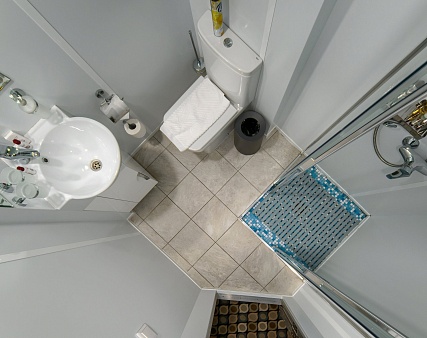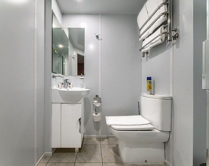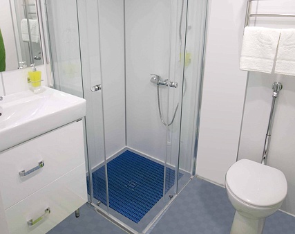 Расширена площадь санблока, отдельный душ, санузел.