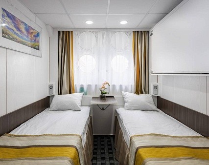 В каютах 201-224 (главная палуба) — две односпальные кровати размером 80х190 см
