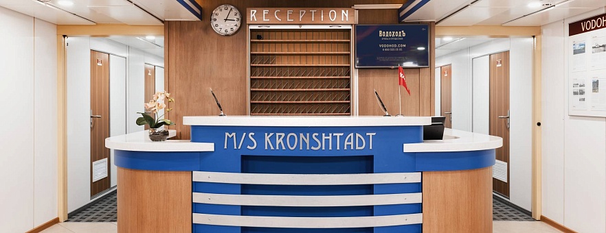 Комфортабельный четырехпалубный теплоход «Кронштадт» — теплоход проекта 301, названный в честь исторической морской крепости вблизи г. Санкт-Петербург. Построен в Германии. Прошел комплексное переоборудование всех кают и общественных помещений в 2018 году. Оснащен современным навигационным оборудованием. Познакомиться с теплоходом поближе, рассмотреть интерьеры общественных зон и кают можно в нашем видео.