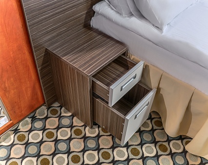 В каютах 347-350 (средняя палуба), 403, 405-409, 412, 414, 419-422 (шлюпочная палуба) — двуспальная кровать размером 160х200 см.