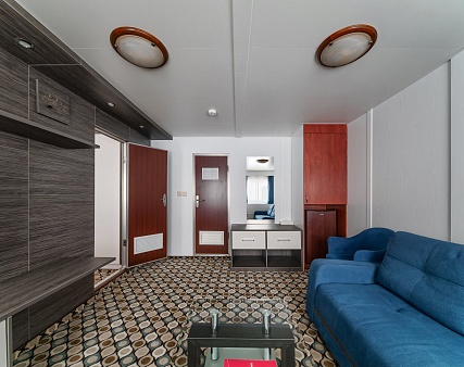Площадь кают: 433-436 (шлюпочная палуба) — 7,5 м2, 429-432 (шлюпочная палуба) — 6,4 м2, 365-372 (средняя палуба) — 7,2 м2, 355, 356, 317, 318 (средняя палуба) — 6,4 м2.