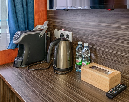 Бутилированная вода в каюте — 1 бутылка (0,5 л) на человека, ежедневное пополнение.